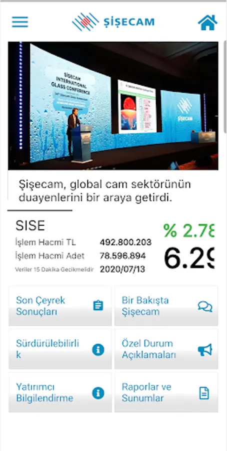 Şişecam’s Investor Relations Application enables users to closely monitor the financial and operational performance of Şişecam on their Android phones.