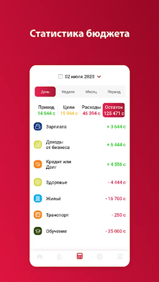 Visualization of goals and the image of a growing or withering tree, depending on the degree of user activity, as well as various notifications motivate users to actively use the application;