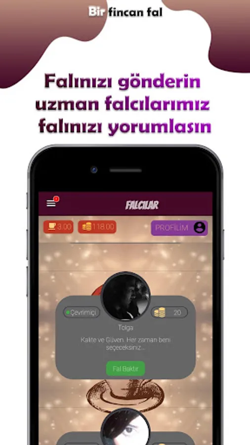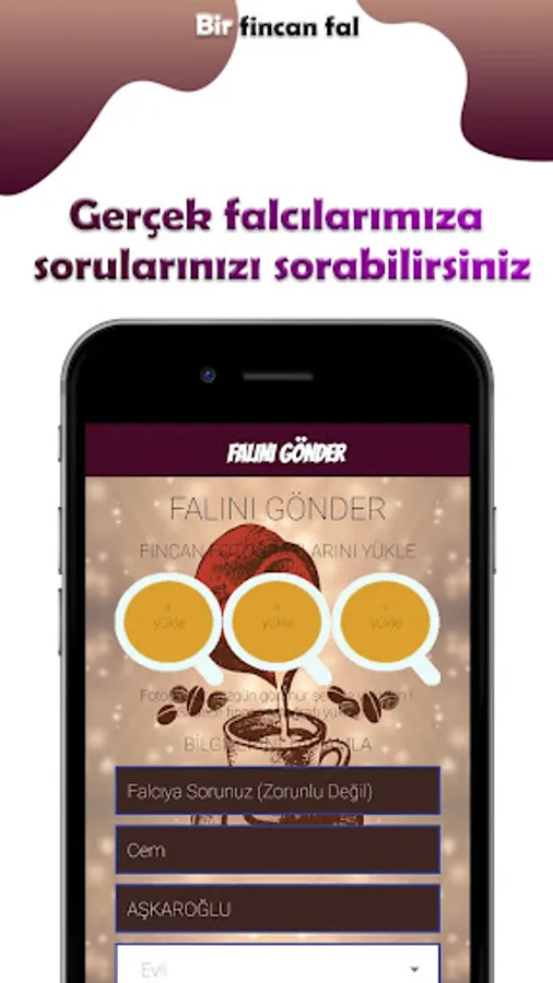 Choose your fortune teller, take pictures - send, your coffee fortune result will be in your pocket within 30 minutes.