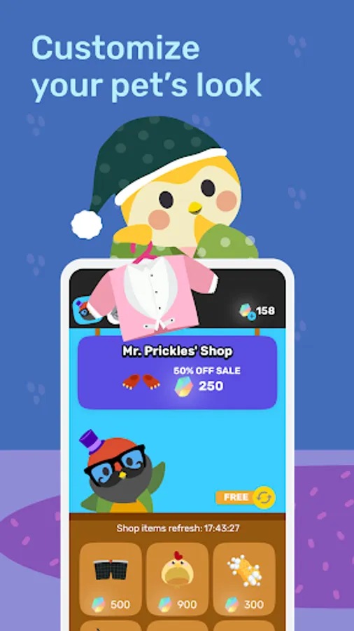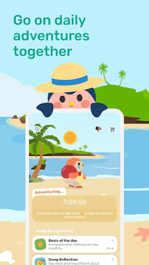 • Start mornings with quick mood checks and energize your pet to go exploring! Choose from various mindful habits from goal tracking and mood journaling to mindful breathing exercises and quizzes!