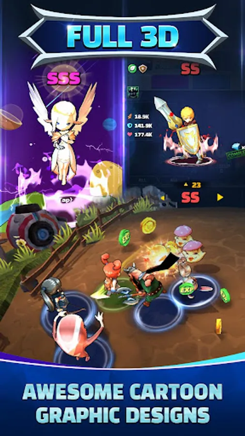 Characters in Hello Hero All Stars are unlike those from any other RPG games. There are classic heroes such as knights and archers, and completely new heroes that fight with trumpets and donuts. Choose your favorite heroes and evolve them to make them even stronger!