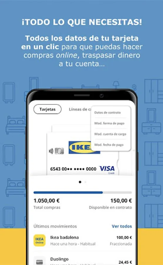 Thanks to this application you can have, with a single click, all the options available to enjoy the advantages that your IKEA VISA card offers you, including financing tailored to your needs so that you can start thinking about decorating or redecorating your home with the Hundreds of options that the IKEA catalog offers you and that you can buy both at your nearest IKEA store and through online shopping that is already available.