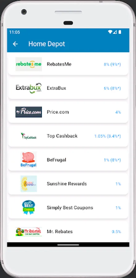 You are able to find and compare cashback, deals and coupons rate every day and save your money every time from the most popular cashback websites including: RebatesMe, Top Cashback, BeFrugal, Active Junky, Simply Best Coupons, 55Haitao, Rakuten, ExtraBux, Price.com, Mr. Rebates, sunshine rewards, RetailMeNot etc.