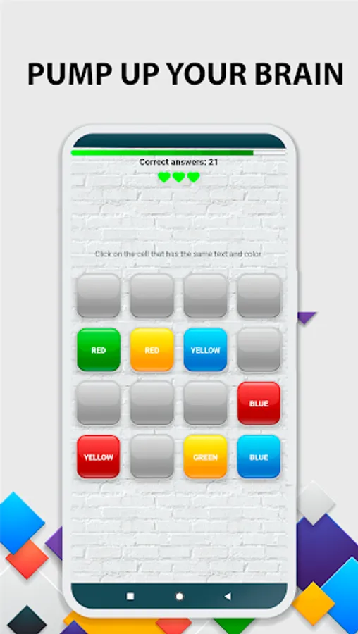 Scientific research confirms that the development of the brain is similar to the development of muscles: if you do not use something, it will atrophy. Scientists conclude: everything is in your hands! Improve brain function with our game!