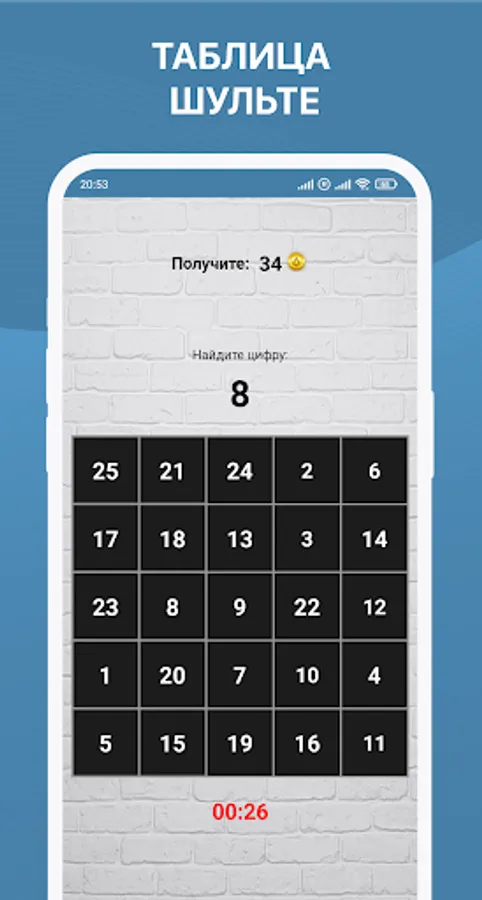 Among other things, the Schulte Table has proven to be the most beneficial training for the brain, logic and intelligence. Also used as an eye exercise. The application simplifies the training process by presenting it in the form of a game. The application contains various training programs based on the Schulte table from the best specialists.