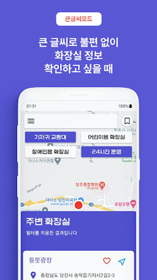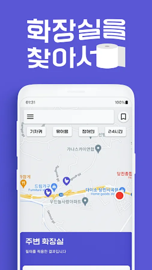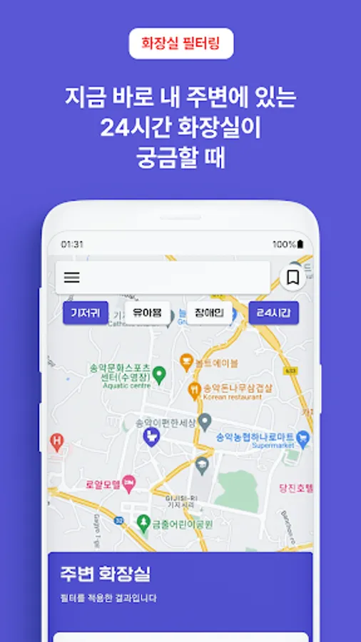Filtering functions such as 24-hour operation or disabled toilets are provided so that you can accurately find the toilet you need.