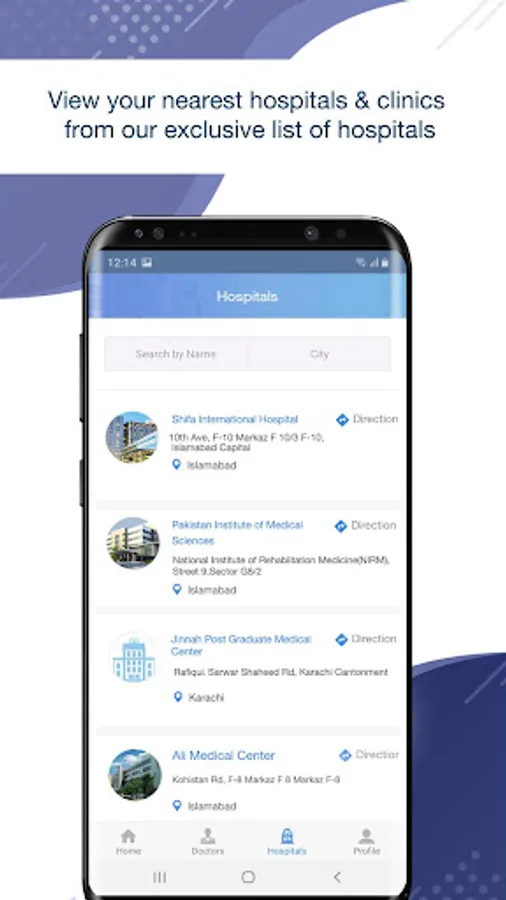 Find your nearest hospitals, labs and clinics in Pakistan. Take a look at our exclusive list of hospitals by entering your location or hospital name.