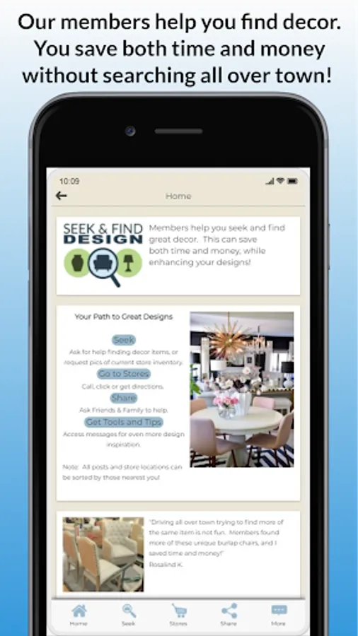 3. Have Fun! : When you are in a deep discount decor store, do you ever find yourself helping someone with their decor choices? If that's fun for you, then this app will be great for you. Our members love helping others!