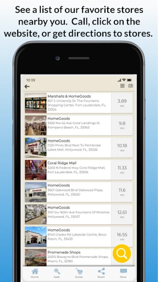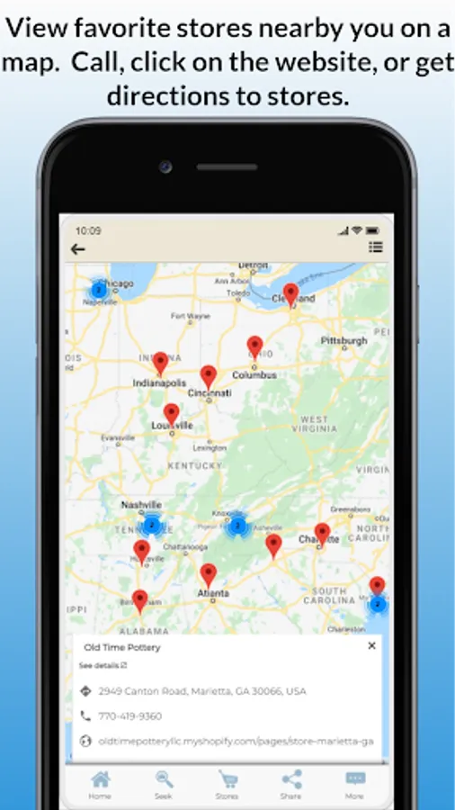 3. Go to Stores: Call, click on the website, or get directions to stores. Access a list of our favorite stores, or view them on a map. Stores are automatically sorted by those nearest to you.