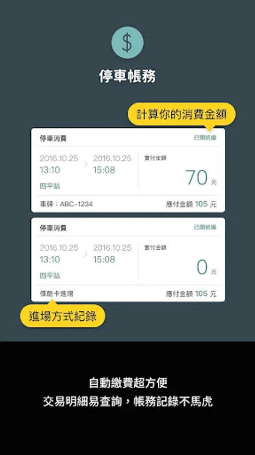 🚩 Parking bills are clear and transparent: parking hours, consumption amount, which credit card offers are all presented for you.