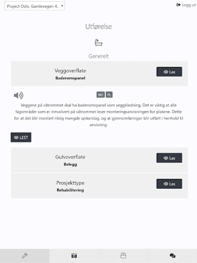 BDOK is a complete wetland design solution. It guides the project manager through all choices and solutions in accordance with the applicable regulatory requirements with descriptions and references to documented solutions. As a project manager, employees and collaborators can easily be invited into the project. The executor can then read the design basis and see selected descriptions and solutions. Everyone involved can communicate with each other, take pictures, download product guides and perform CS. The system eventually generates a complete wet room documentation for the customer.