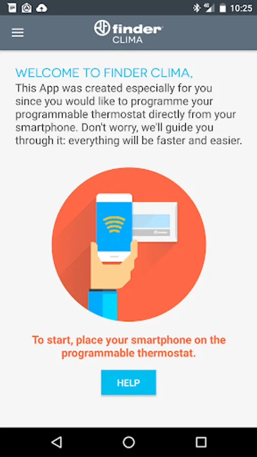 Finder Clima makes it easy to programme the 1C.81 chronothermostat with your smartphone by using NFC (Near Field Communication) technology. You can assign a name to the different chronothermostats in your house and save the relative programming on your telephone. When you place your smartphone against the chronothermostat, the programming is immediately transferred.