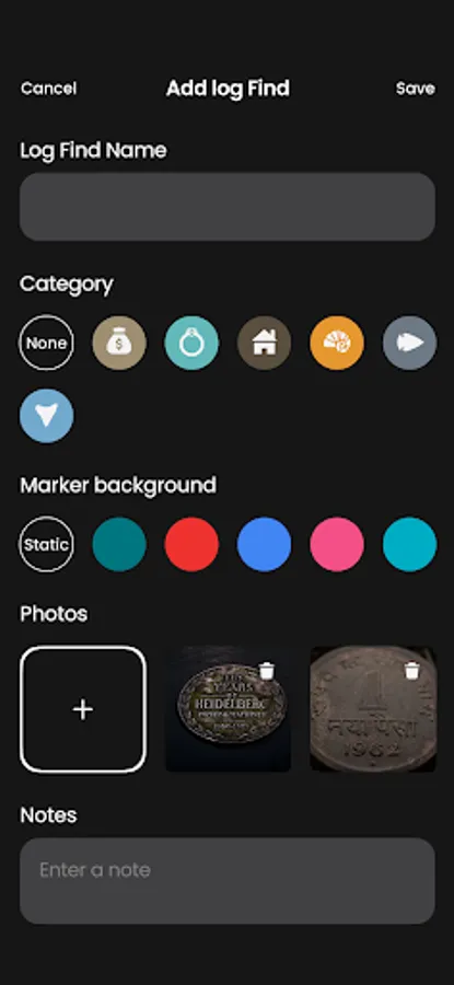 Finders Keepers gives you the ability to place color and item-specific pins to mark exactly where you find your treasure. You can also name, describe and take pictures of your finds to track your hunt as accurately as possible.