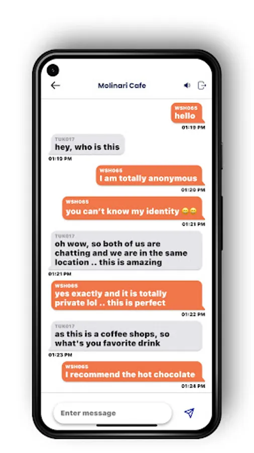5- If other users are checked in into the same place, then all of you can chat together anonymously
