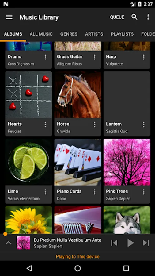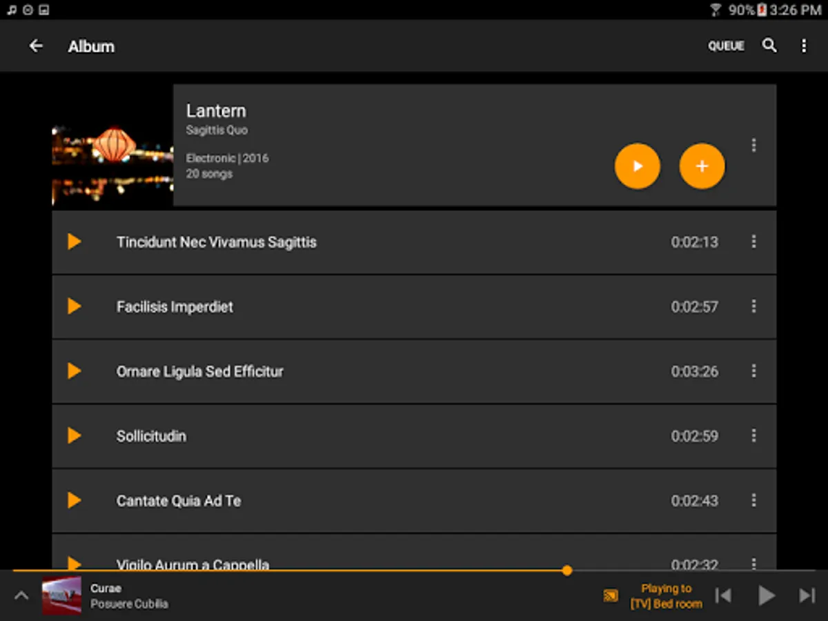 • Fast and efficient searching of your music collection regardless of size. Search for Albums, Artists and Songs (requires your UPnP/DLNA server to support searching).