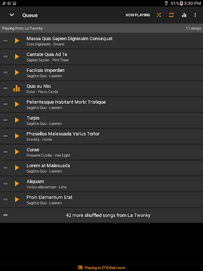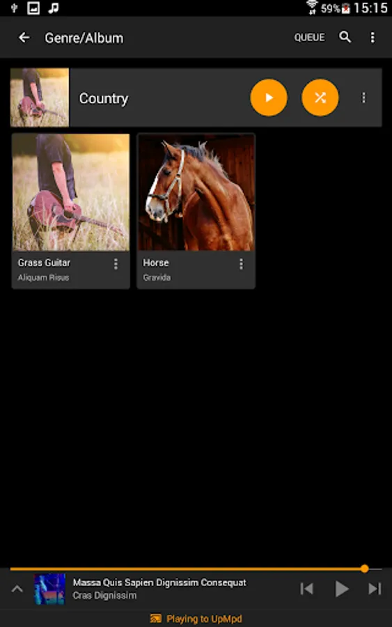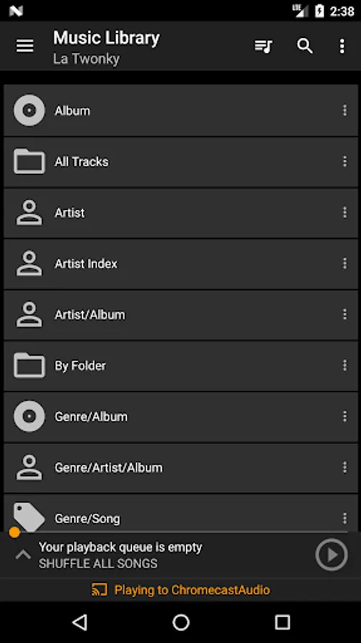 • Shuffle entire library and/or any combination of albums, artists, genres etc regardless of the size of your music library (when using DLNA/UPnP, this requires a server that supports searching - most do).