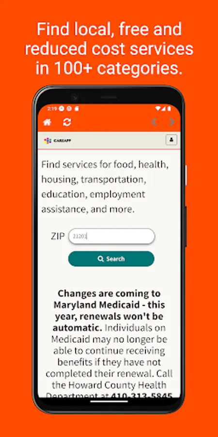 CAREAPP is a digital resource for Howard County, Maryland residents seeking community programs and services. From food assistance to help paying bills and many free or reduced-cost programs, CAREAPP is an easy way to get services and connect people to what they need.