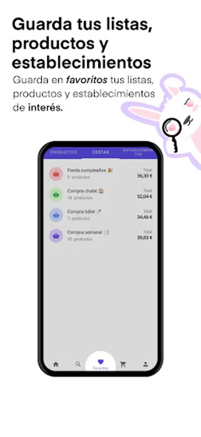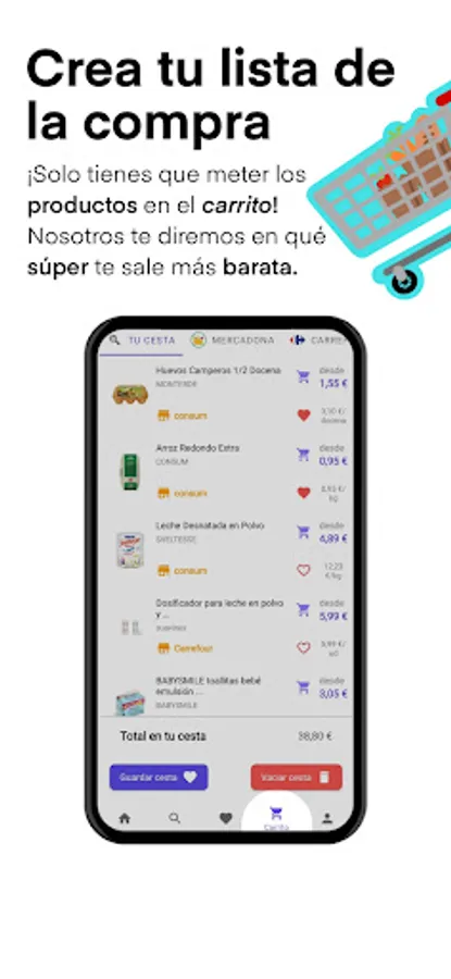 Puedes comparar los precios buscando su nombre o escaneando su código de barras. También podrás guardarlos en favoritos o en tu cesta.