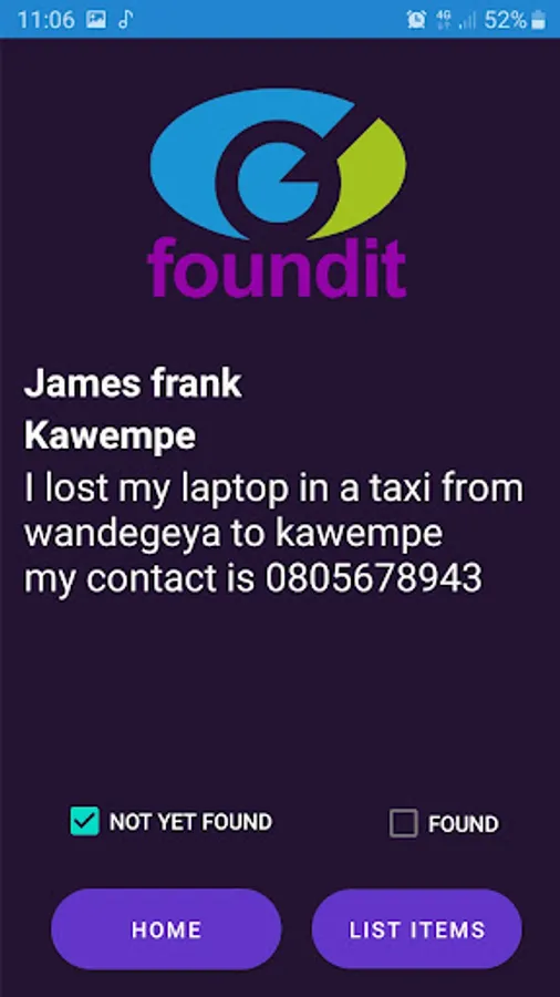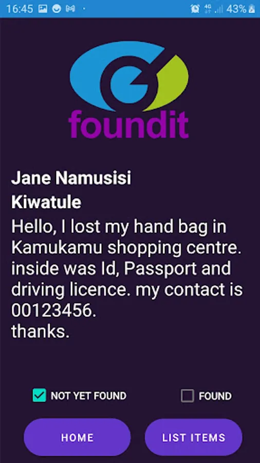 foundit App is designed to help you find your lost item(s) in just a few clicks.