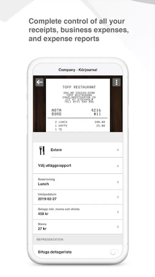 * Automatically calculated accounting of all expenses through simple choices, also at representations.