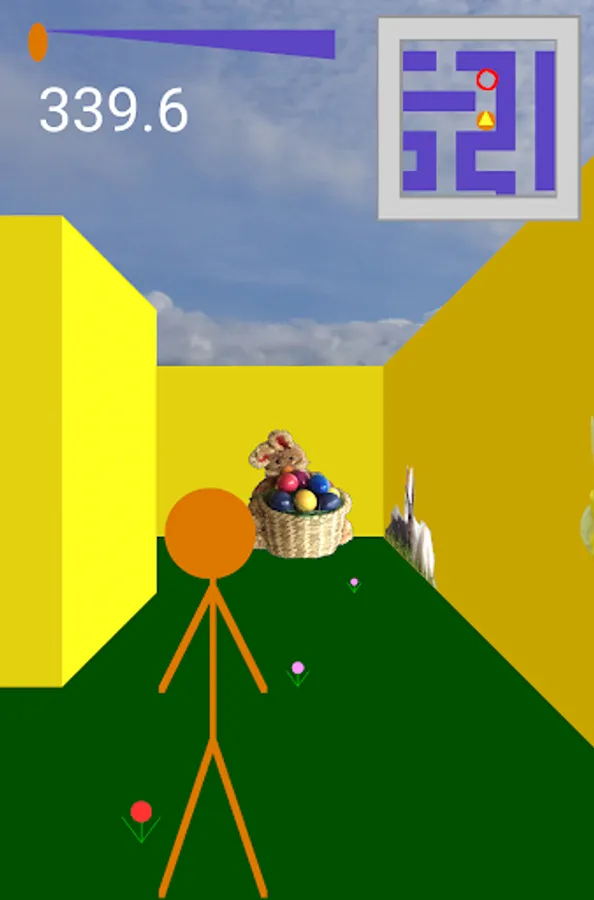 Walk through the labyrinth and bring the stickman / girl to a basket with Easter eggs but never hit any monsters.