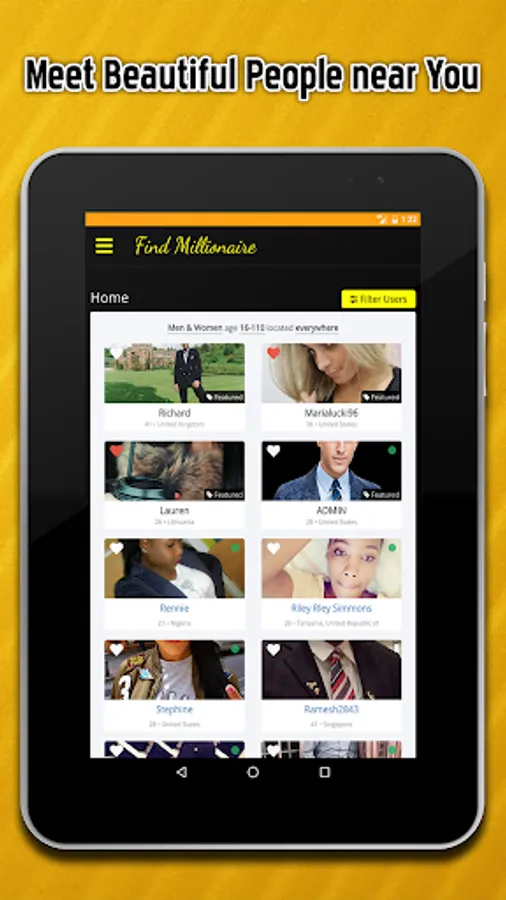 Online Dating - FindMillionaire is the only millionaire dating app that finds you millionaire match based on what you really care about… and it's 100% FREE. That’s why Online Dating - FindMillionaire is the most popular Millionaire app offering a slick, sleek and sophisticated service for wealthy and established men and hot beautiful women, with dating and business features, mixing business and pleasure has never been more fun. Meet real millionaires you actually like with Find Millionaire. Find Millionaire is the only adult dating app that finds you real matched millionaires based on what you care about. And best of all — It’s free! For more than a decade, we've been using math to find people dates — that’s why Find Millionaire is the best adult dating app on earth!