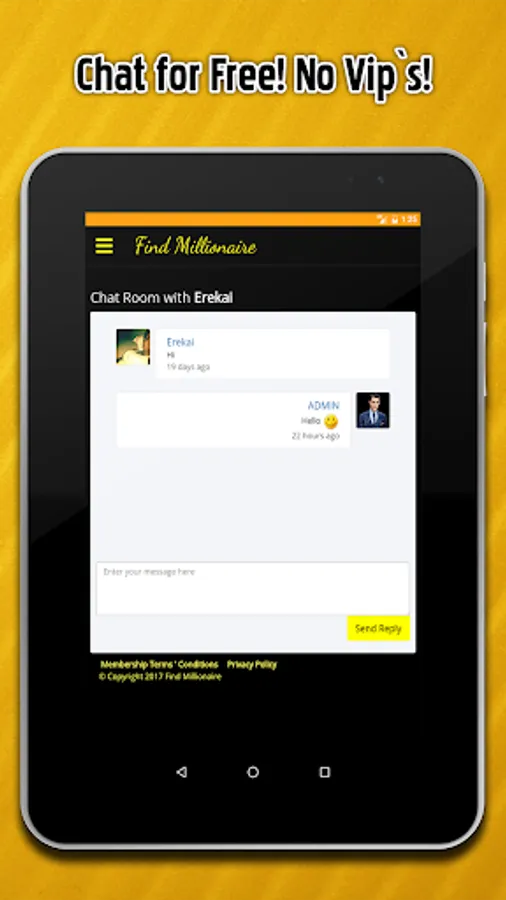 Yes you read right, our app Online Dating - FindMillionaire don't have in app purchases! Everything in our app is 👍FREE👍! No hidden costs. We hope you will enjoy using our app!❤️
