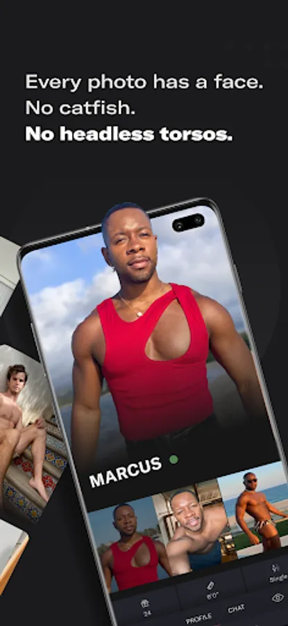 No more headless torsos. Every profile is required to have three face pics, cross-checked with the selfie in your application.