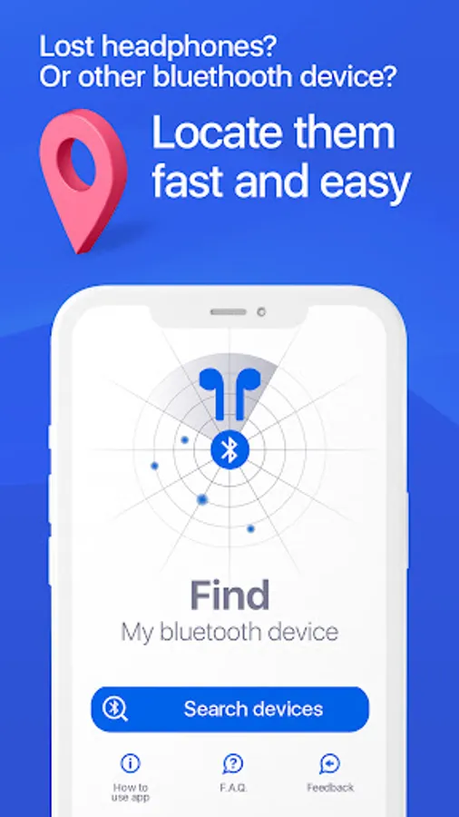Where are my headphones? The 🔷Find My Bluetooth Device🔷 app will tell you. Determine the place of your earbuds or any other uncategorized devices easily. Lost your fitness band? Leave the panic aside and open the bluetooth device locator! Don't waste any additional money on new pairs of headphones. Walk around slowly. As you move closer to the missing item, the bluetooth 'headset finder' will indicate it with a sound and the pointer. Launch the bluetooth finder app instead and reveal them instantly!