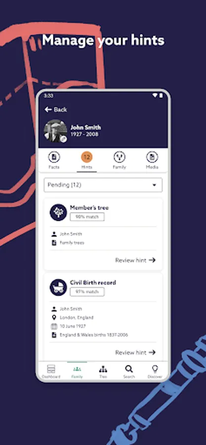 Quickly swipe through your hints and add them to your family tree. Or, reject them if they don’t look relevant.