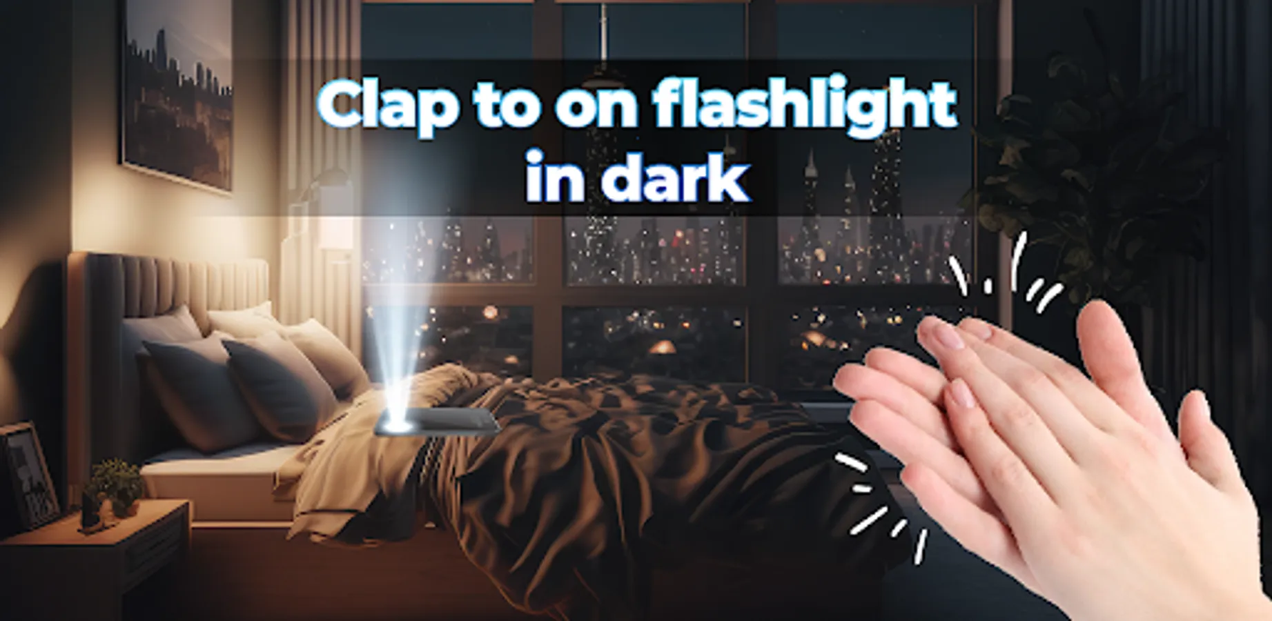 It's too dark, you can't see the phone. Just clap, the phone will turn on the flash. You can completely control how the flash fires: flashing disco or flashing continuously.