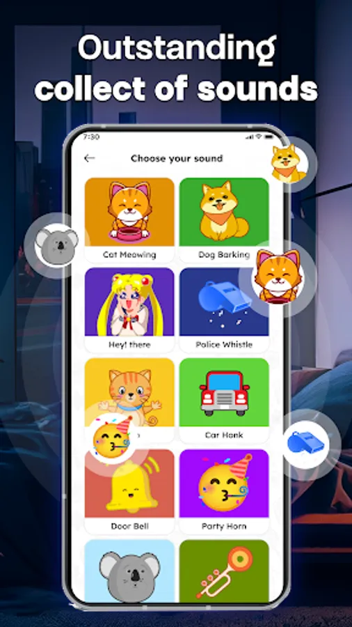 - Find my phone by whistle - find my phone with clap: You can choose the sound such as Cat meowing, Dog barking, Car Honk, etc.