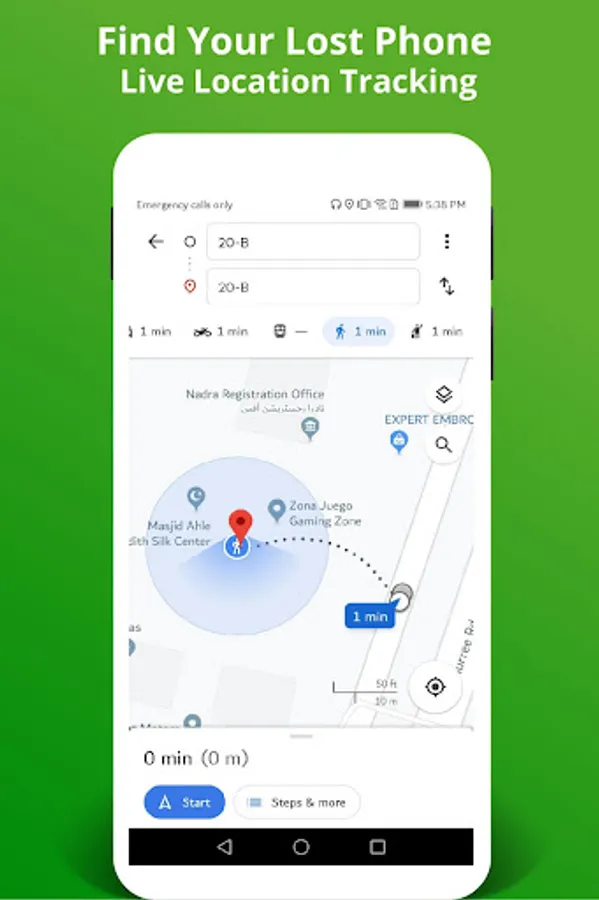 Find Your Device on MAP – The Find my Lost Phone app allows you to “Check Location” of your lost device and will enable you to draw a direct route from your current location to the location of lost device. Using this lost phone tracking route, you will be able to reach the place where your lost phone is located.