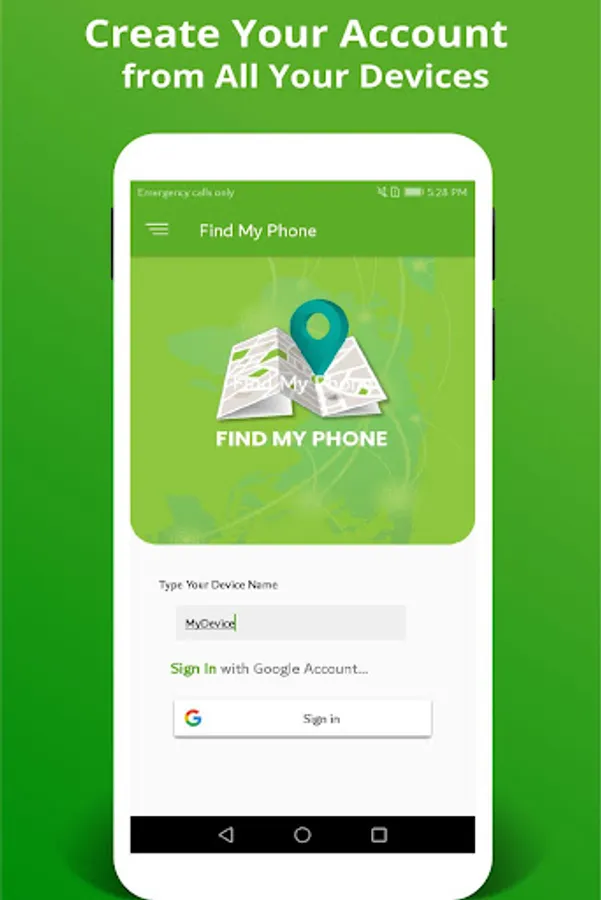 3- Sign in to “Find My Phone” app using your “Gmail” ID. The app allows you to sign in from your Google account.