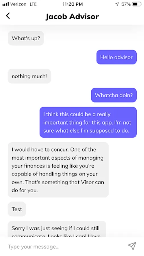 Visor financial coaches are on-demand resources for personalized financial advice, but the decisions remain yours. Your coach only has as much financial information as you wish to reveal and will never have direct access to manipulate your accounts without your approval.