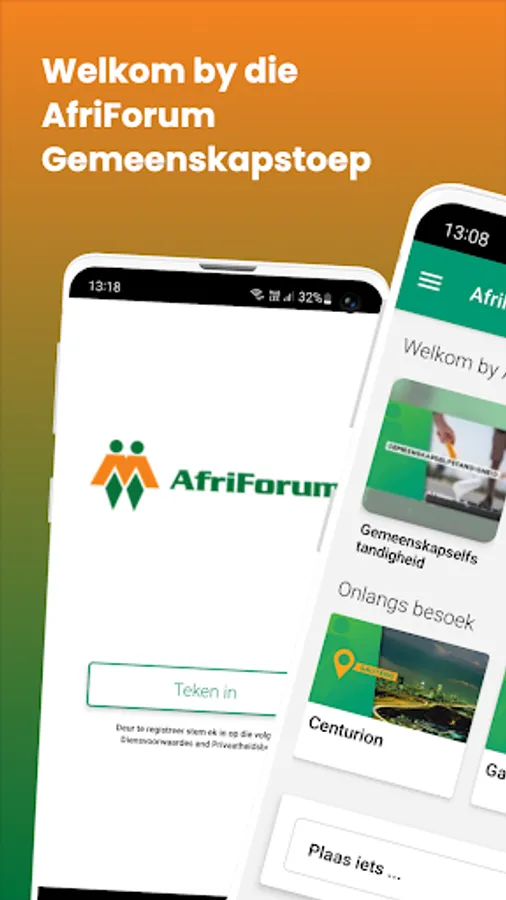 Welkom by die AfriForum se kommunikasie selfoontoepassing. Hierdie toepassing laat AfriForum toe om te kommunikeer met al sy takke asook buite takke.