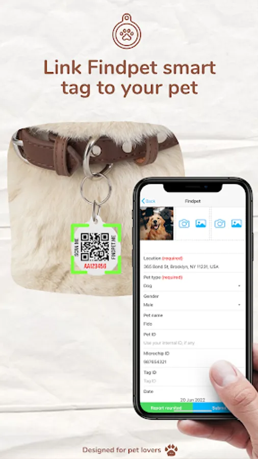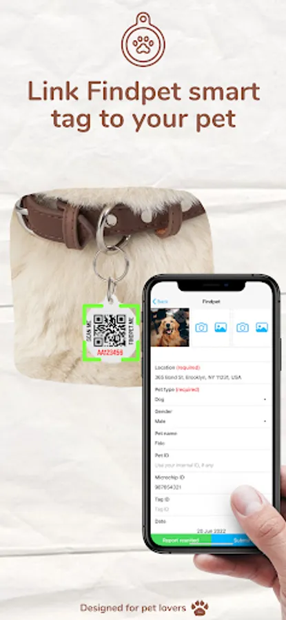 - upload photos of your pet's unique markings, fur, and color patterns