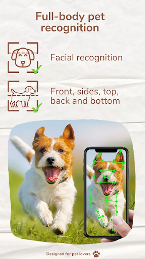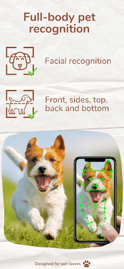 Pet’s unique markings, fur, and color patterns are used to identify and search for lost pets