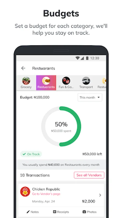 This app is a spending tracker and budget tool, bringing all that power to you in a clear interface that tells you what you spend, where you spend, when you spend it, and how to adjust your spending to meet your life goals. If you get SMS transaction alerts, this app is for you! If you don't get SMS transaction alerts, this app is still for you! πΆοΈ