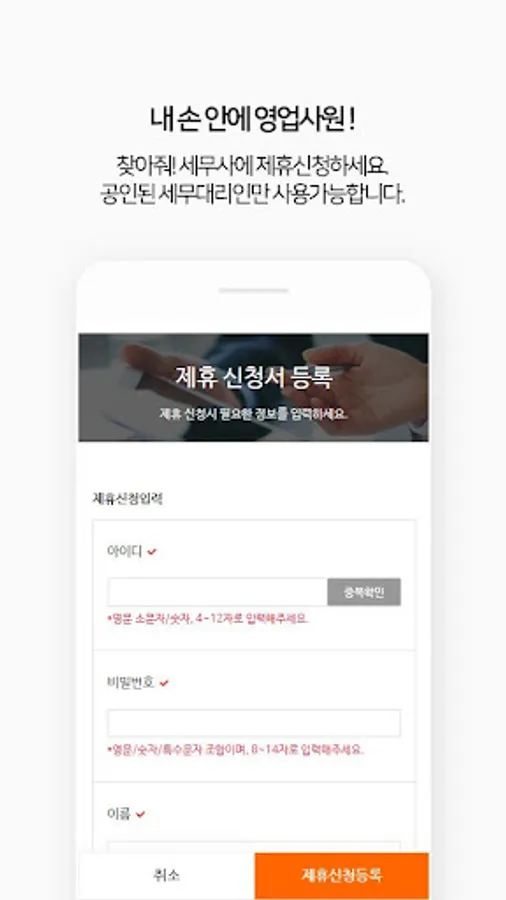 1. 세무대리인분의 제휴신청서를 작성해주세요. 사업자등록증 반드시 첨부해야합니다.