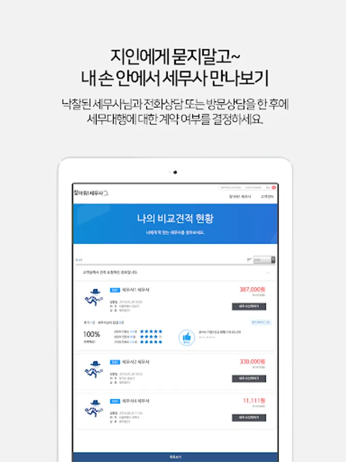 * No. 1 in Korea, the only platform that compares the fees of 700 tax accountants and labor attorneys nationwide