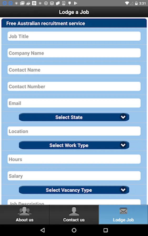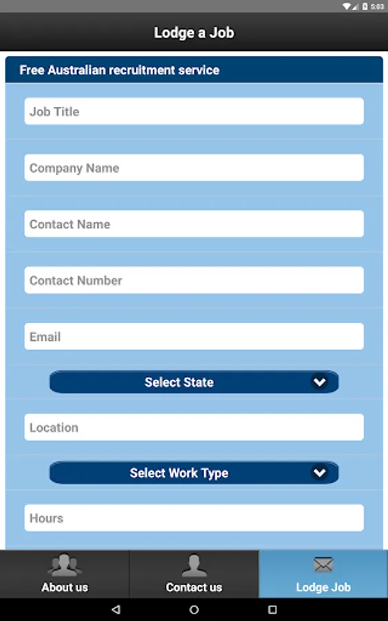 By using this App you are able to lodge job vacancies from any location at any time of the day.