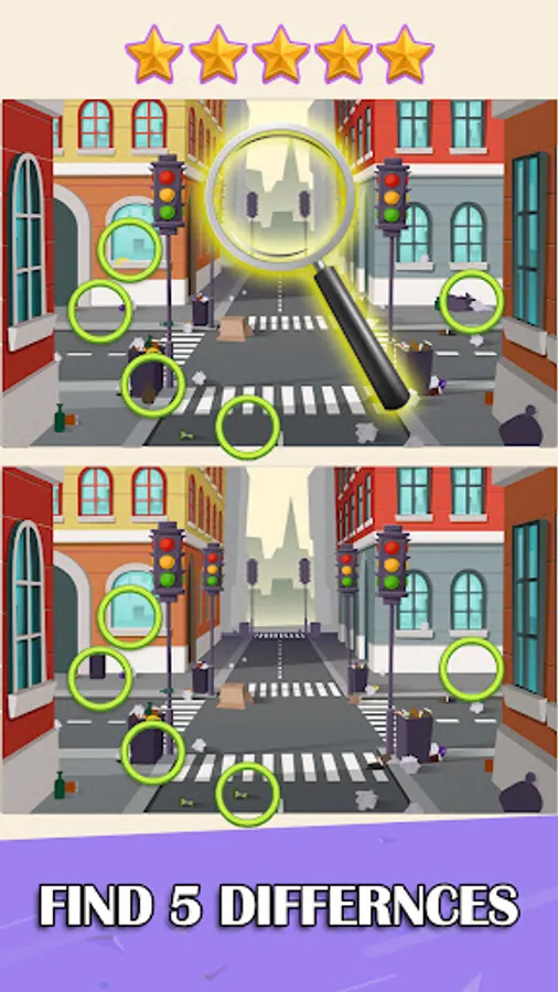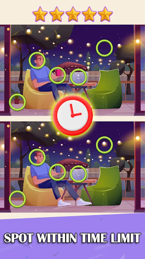 - Try to find 5 differences in the picture in the time allowed, search for small insignificant differences