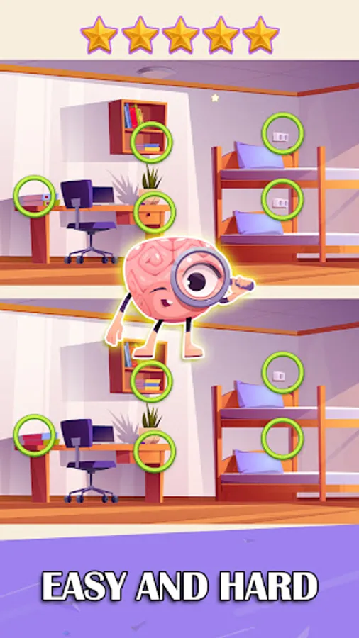 Test your detective skills. Can you find even the hard differences and hidden objects? Search to spot the differences requires you to focus like a true detective. Find it out for yourself! Hints to help you find difference when you get stuck. Find the difference game is a great way to relax after a long day. Finding differences between two pictures helps you with stress relief. Give it a try and observe just how quickly focusing on finding differences on pictures relieves your stress and anxiety.