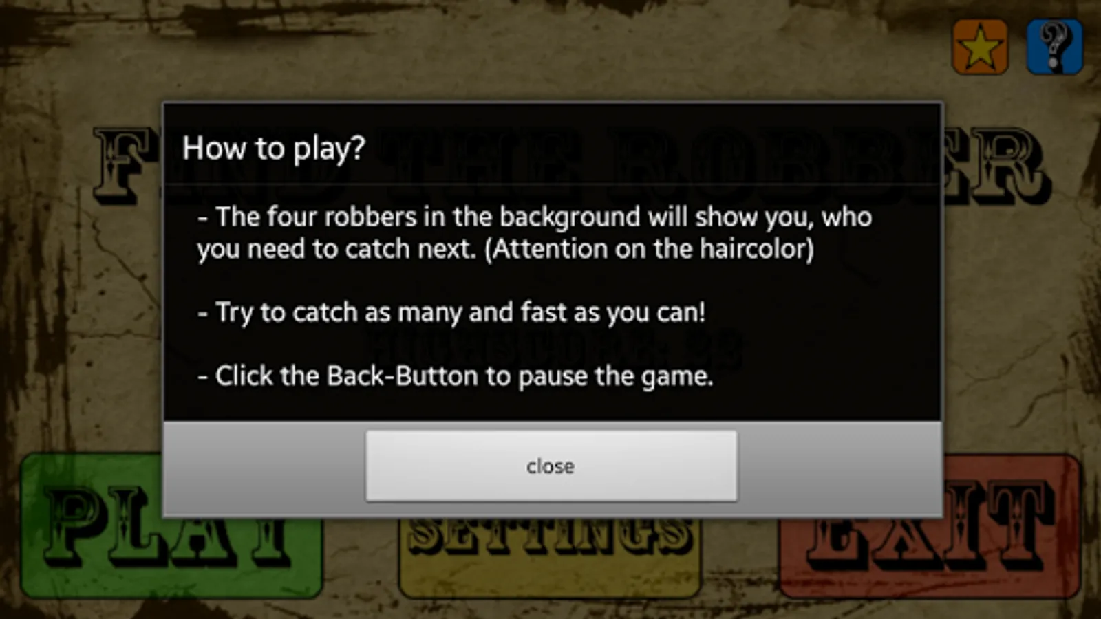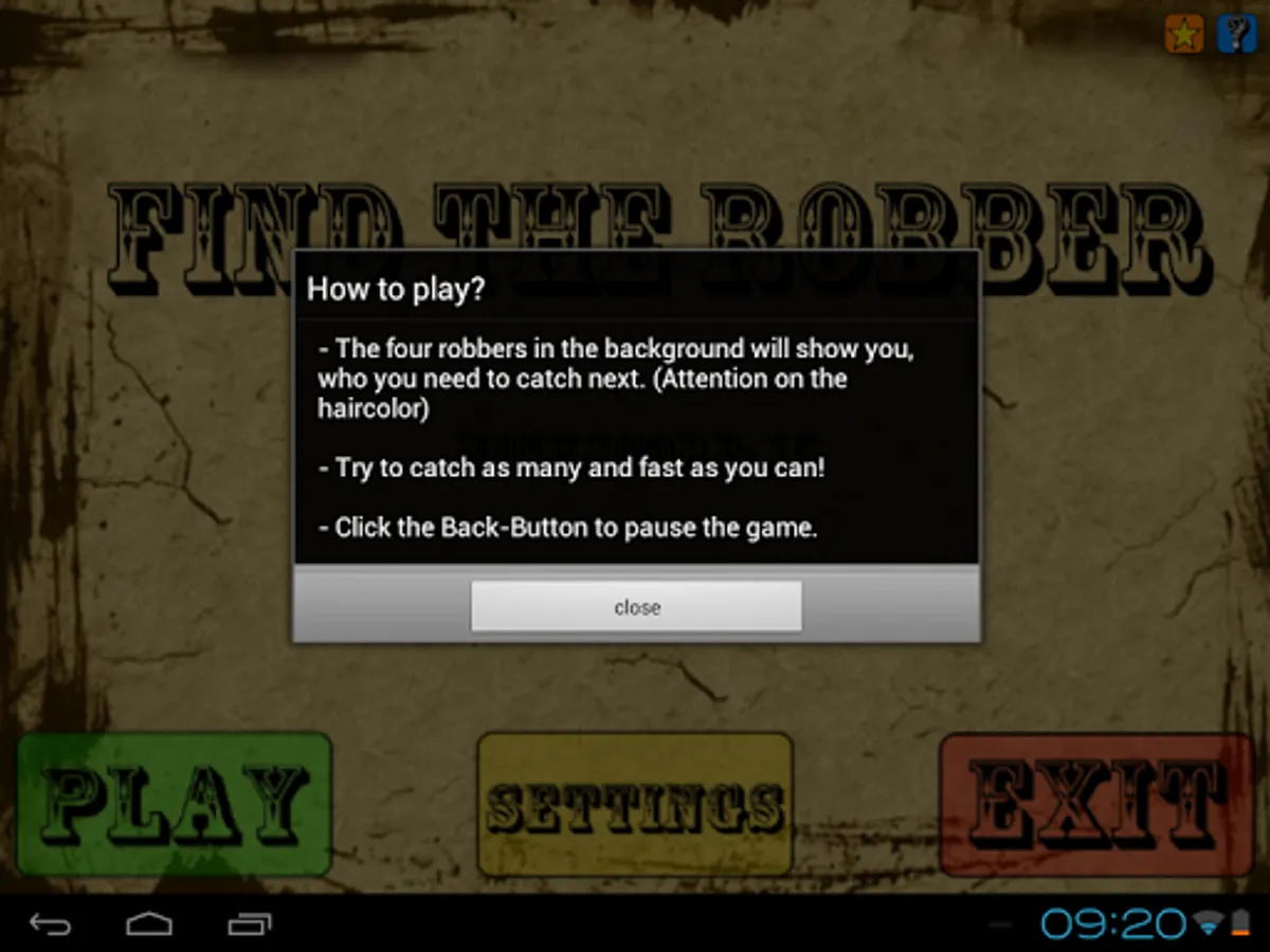LOOK OUT: pay attention to the Wanted poster on the background, it will show you the robber you need to catch!