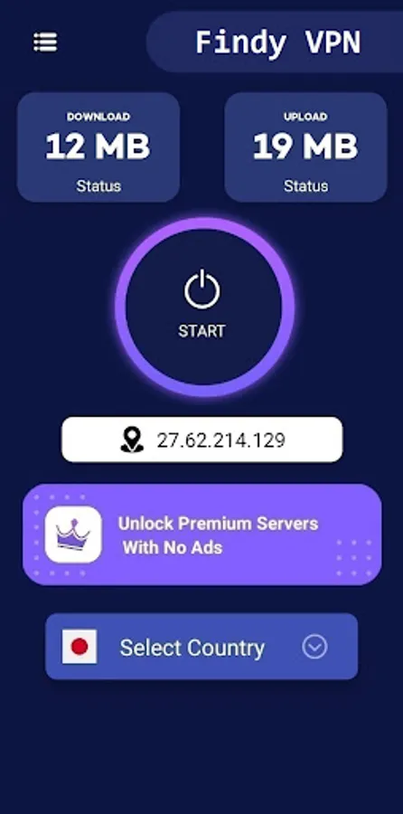 Findy VPN App - Secure & Fast VPN Proxy - is very fast and secure vpn app with unlimited bandwidth and lot of secure servers in this app when you click on select option you can see vpn server lists. In this app you can connect any country server on only one click. when you connect with any server you can see kbs speed now You can easily unblock those ego-restricted websites and gain access. If you want to Become Pro member Just click on remove ads and enjoy ads free app.
