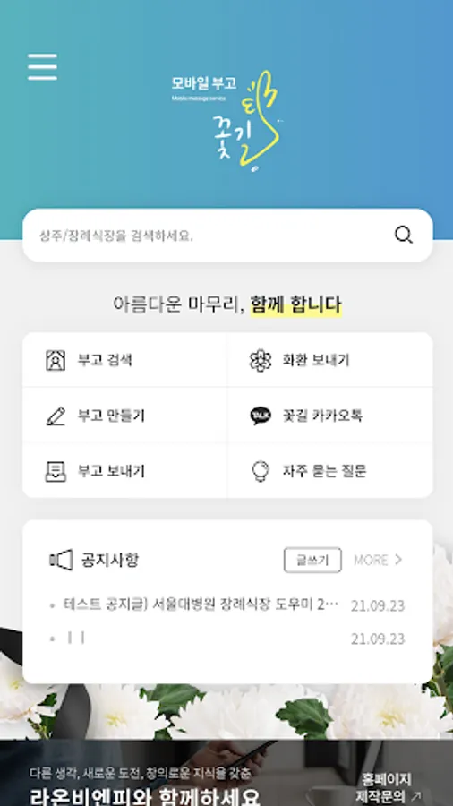 Flower Road Obituary is a premium mobile obituary notification service that can enhance the dignity of the deceased and politely transmit the obituary to acquaintances.