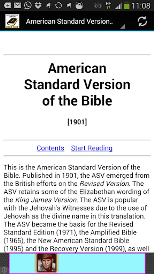 This App includes the complete ebook of the American Standard Version of the Bible and the audio version of the ASV Bible with 61 audiobooks (currently missing are the audio files for books 3,4,6,11, 12, and 14 of the Old Testament - we will update the app, as soon as those books become available). - All in English Language.