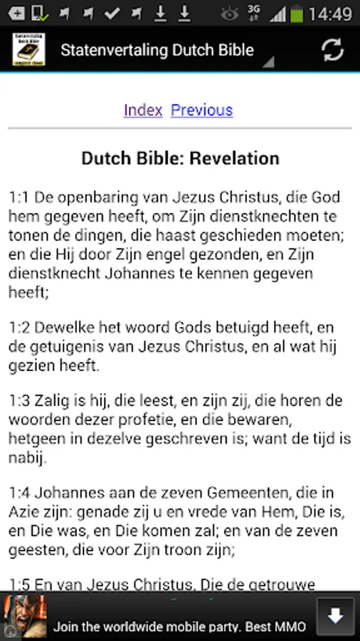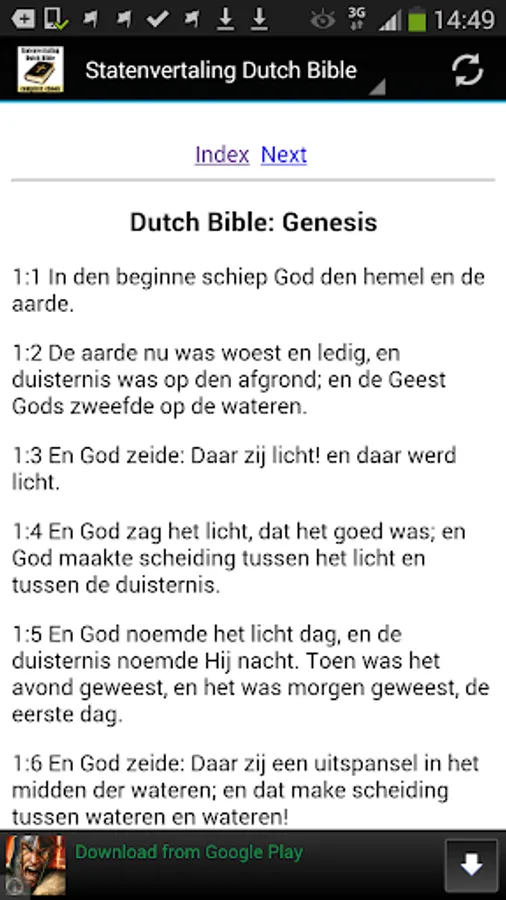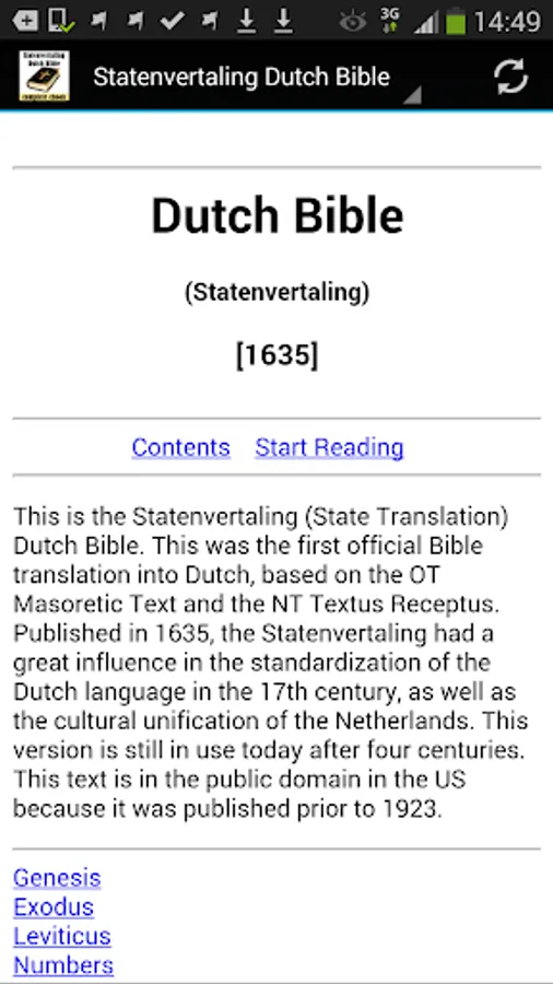 This app includes the the Statenvertaling (State Translation) Dutch Bible.