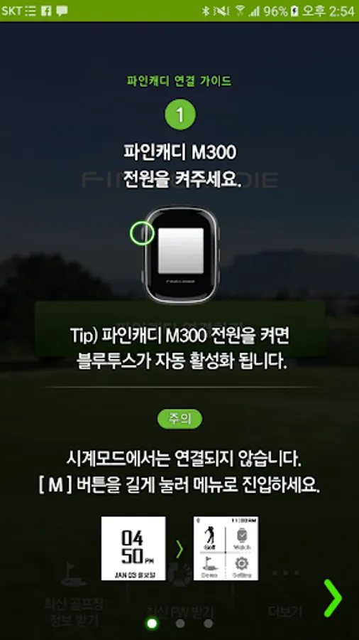 -Make a Bluetooth connection between FineCaddy M300 and the application at the start point before the round.